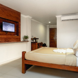 A standard room at Saffron Hotel & Restaurant is designed to provide guests with a comfortable and pleasant stay. The rooms are equipped with double beds and ensure guests a good night's sleep. The room features a window with a sea view that allows guests to enjoy the beautiful scenery while relaxing in their room. Guests can stay connected with the world through complimentary WiFi. A mini-fridge is also provided in the room for guests to store their own food and drinks. The room also has an attached bathroom with hot water for guests to freshen up. The hotel also offers additional amenities like a 24-hour front desk, room service, and housekeeping to ensure guests have a comfortable and convenient stay.